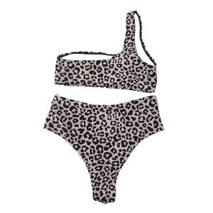 Animal Print Bikini One Shoulder High Waist Cheeky Size Small Swimsuit White