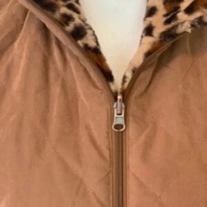 A gorgeous reversible vest that can be worn on the solid side or soft animal print side.
