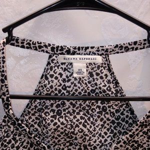 Banana Republic Animal leopard print tank racer back silk blend top. Very light weight for spring and summer in black, white and olive green. Cotton & silk blend. No tears, stains or damage of any kind. Gently loved size XS. Steam cleaned and stored in a smoke free environment.
