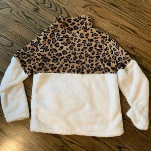 NWOT cream & animal print 1/4 zip.