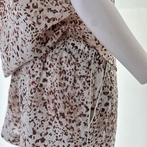 Brand new with tag a set of animal print pajamas top is size XS AND shorts are size S, material is very soft to touch the short has two side pockets with satin trims and elastic waist band.