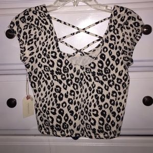 black and cream. animal print. criss cross back. crop top. size medium. fits small. never worn still has tags on it.