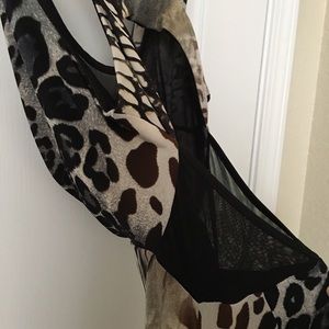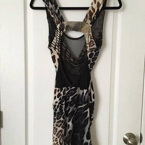 Animal print dress. Mini. Has mesh details over cleavage and low back. Awesome for a night out!