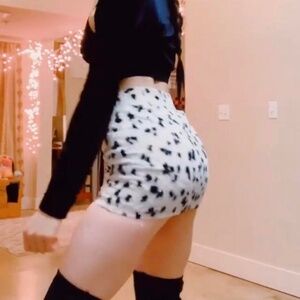 Animal print fuzzy textured mini skirt with spotted print , satin lining…