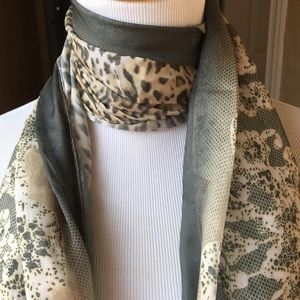 From theclosethound.com. Retail value $29. Viscose green/yellow multi animal print scarf. Very versatile.