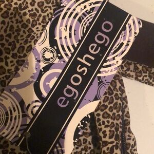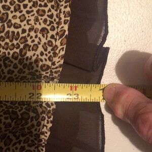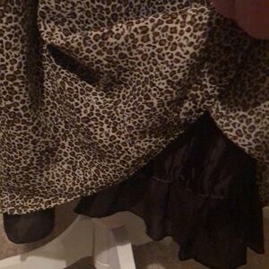 Animal print skirt by Egoshego. Tan and black, size medium. Side zipper closure. Wide reversible sash ties around waist. Black lining ends below hem to reveal ruffle. Medium. NWOT