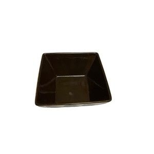 Very cute animal print dip dish. This dish is square with a brown interior and brown spots on a cream background. This bowl is handpainted and measures 6 1/4 x 6 1/4 x 3.