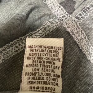 Vintage Havana Cotton (55%)/Poly (45%) blend crew neck, drop shoulder, bat wing top in greys with white top stitch. In other words: soft and comfy! Loose elastic band at bottom.