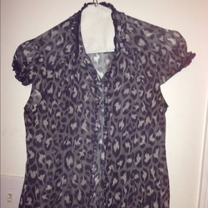 Lt grey , Drk Grey and crem leopard print top with. Small ruffles down the middle...