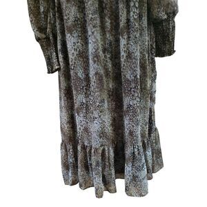Animal Print Long Sleeve Smocked Midi Ruffle Hem milk maid cottagecore peasant