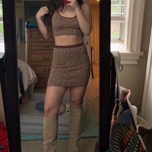 Animal print knit very well made set. Mini and crop. Both are stretchy