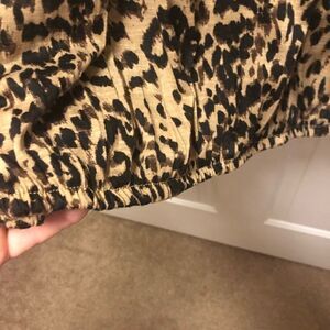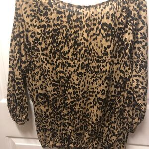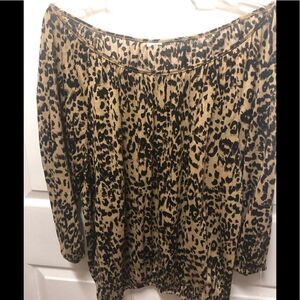 Leopard top can be worn off both shoulders or one three-quarter elastic sleeve and elastic bottom