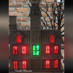 This is a really great piece! Every Halloween display needs a Haunted House, and this one delivers. Designed like an old mansion, this creepy house will set the mood with its haunting figures in the windows, eerie color-changing LED lights and scary sound effects. This is Extremely similar to Cracker Barrels "2019" version of the one they sold. This is perfect for tabletops, mantels, shelves and more. ** Be sure to have your sound on and check out the VIDEO to see it in action!! The video is only 14 seconds long, as thats all poshmark lets you post up but the house goes through its sound and light show for approx. 49 seconds straight. This Haunted House also features: *Timer Function for 2 hours on, 22 hours off * Textured Details *Lights only Mode, and Sound & Lights Mode *Motion Activation *For Indoor Use Only. Requires 3AA Batteries, which are not included. *Measures approximately 10 inches long x 3.5 inches wide x 13.25 inches high. Materials: Plastic & electronics. *This Haunted Mansion is Brand New with Hang Tags.
