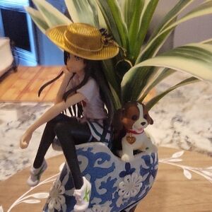 Anime Girl & Dog Figurine Sitting on a Shoe Vase Planter