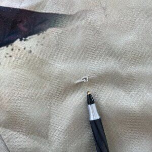 2) Stain inside bottom hem, Image #8. Can't be seen when worn.