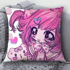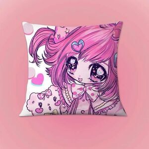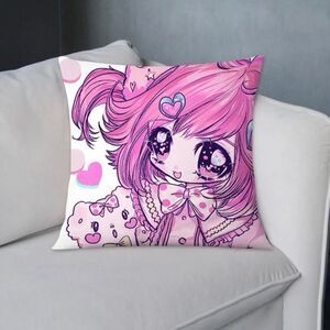 Anime 2K Animecore Girl with Pink Hair Pillow Cover