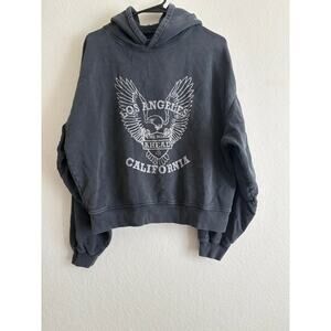 Anine Bing Alec Hoodie White Eagle in Washed Black