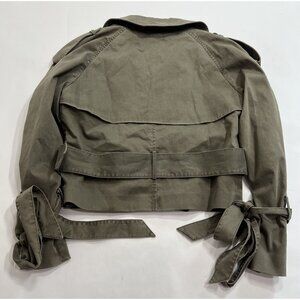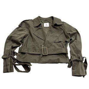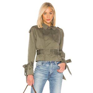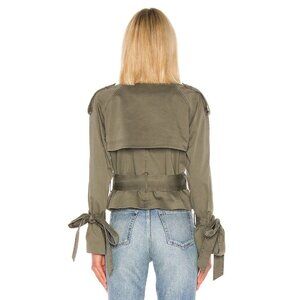 Description from retailer: Partial front zipper with hook and eye closure. Self-tie cuffs. Belted waist with buckle closure. Shoulder epaulettes. Back storm shield. Made in Turkey. Revolve Style No. ANIN-WO43. Manufacturer Style No. AB16 026 11.