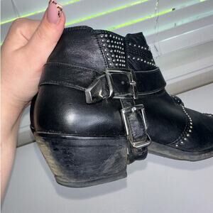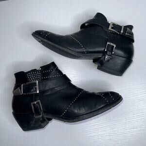 Anine Bing Bianca Leather Boots/Booties Black Silver Gunmetal Studs Size US 6