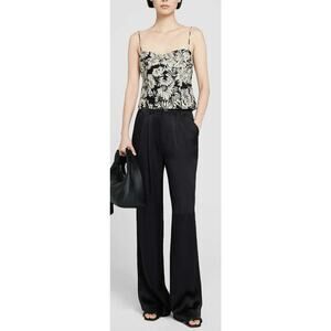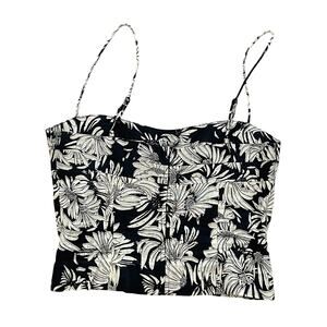 Anine Bing Black Beige Floral Sleeveless Top Linen XS