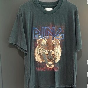 Black short sleeve tee with bold tiger graphic. Blue and red lettering adds contrast. Casual and stylish.