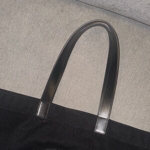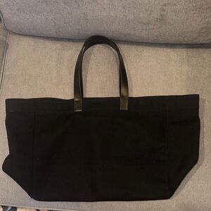 Stylish black tote bag. Features silver Anine Bing logo. Durable handles. Perfect for everyday use.