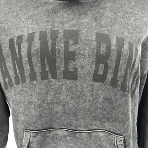 Anine Bing Black Washed Logo Long Sleeve Hoodie Hooded Sweatshirt Top Size M