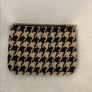 Chic houndstooth pattern. Features zipper closure. Compact and stylish.