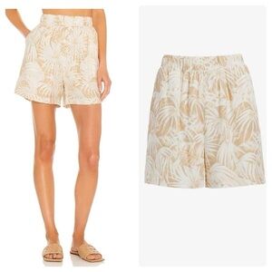 Yellow printed crepe (55% Viscose, 45% Rayon). Shorts. Elastic waistband. Pockets. Inseam: 4", Rise: 11". Leg opening: 26". Imported.