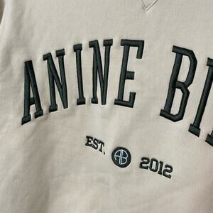 Cozy cream sweatshirt with bold Anine Bing logo. Soft fabric. Perfect for casual wear.