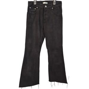 Anine Bing Crop Flare Button Fly Black Denim Jeans Raw Hem Wide Leg Size 25