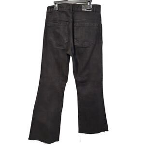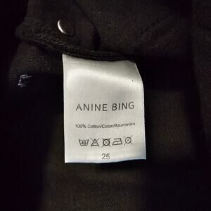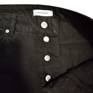 Keywords: Anine Bing jeans, crop flare denim, black wide leg jeans, raw hem flare pants, high rise button fly jeans, designer denim size 25, cropped flare leg jeans, edgy black jeans for women.