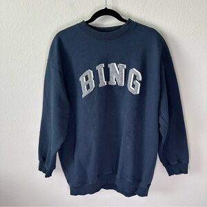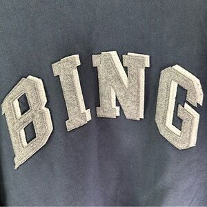 Dark blue sweatshirt featuring bold 'BING' lettering. Casual and chic style.
