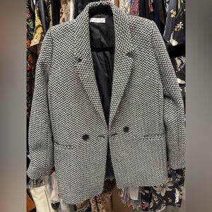 Stylish herringbone blazer by Anine Bing. Features a classic black and white pattern. OVERSIZED It has never been worn. However, it has a slash inside on the left shoulder. It does not affect the look of the blazer.