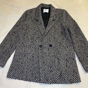 ANINE BING- Double Breasted Fishbone Blazer in Cream / Black Size Small Workwear