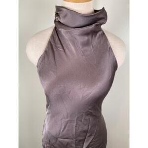 Anine Bing Eliana Silk Halterneck Maxi Dress in Iron Brown Size Small