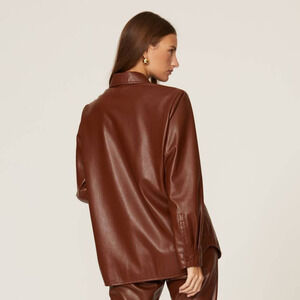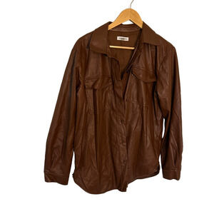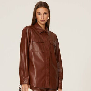 Anine Bing Hutton Shacket Faux Leather Front Button Size M Brown