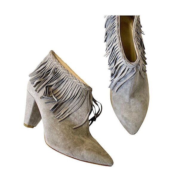 Anine Bing Irmelin Fringe Ankle Boots in gray suede