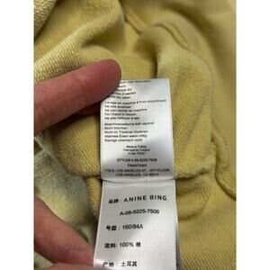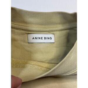 Crewneck oversized sweatshirt from Anine Bing. Faded yellow color has a garment dyed almost tie dyed look. Some areas darker some lighter. Relaxed fit. Graphic front with ribbed cuffs and hem.