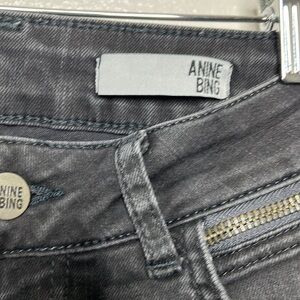 Anine Bing Jax Black Zipper Skinny Ankle Distressed Jeans Women Size 26