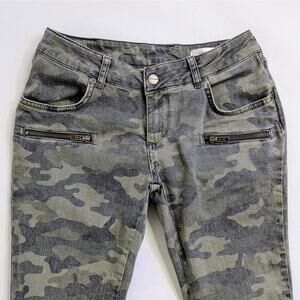 Anine Bing Jeans Women's 28 Green Camoflage Zipper Skinny Stretch Denim Low Rise