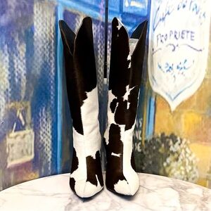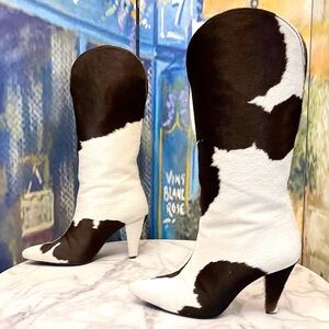 Tags: anine bing boots, jolene cow print, cowboy boots, statement boot, western boots, festival fashion, calf hair boots, yeehaw chic, trending boots, black white heels, pony hair boots, Coachella boots, fall boots, turkish leather