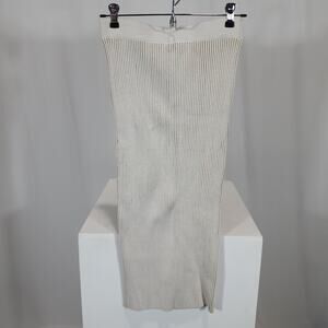Banded waist design, midi-length, breathable, wide-rib, pull-on style, ribbed knit texture, note: minor staining pictured.