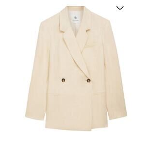 Anine Bing Kaia Linen Blazer In Light Yellow Double Breasted Jacket Size Small
