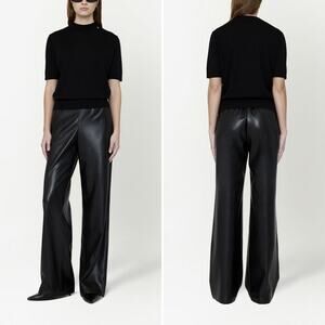 Anine Bing Koa Pant in Black Vegan Leather Size XS High Rise Wide Leg Chic Sexy