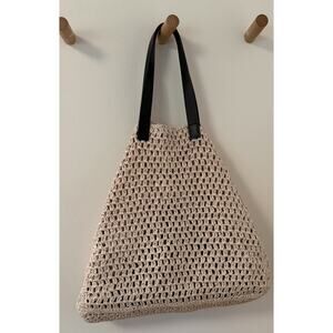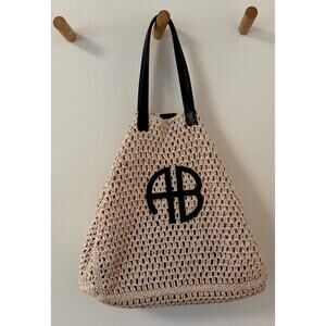 Anine Bing Large Rio Tote Bag in Natural Tan Raffia Straw Leather Handle EUC