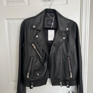 NWT, never worn. I ordered multiple jackets and decided to go with another style from Anine Bing. This is the Anine Bing Benjamin Moto Leather Jacket. Beautiful smooth leather, substantial weight, not flimsy. Lined. I’m a size small, but wanted a more oversized look and to layer sweaters underneath and the medium was perfect!