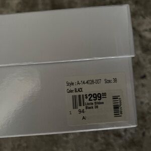 Black, size 38, preowned condition- worn once! Original box, cloth sleeve included.