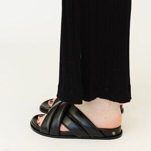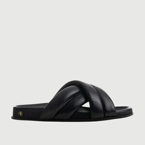 These best-selling flat sandals feature puffy cross-over straps and a padded sole made of smooth lambskin leather. With a gold-tone ANINE BING monogram on the heels, these slides are both comfortable and stylish. (Solely accented with a touch of signature branding!)
