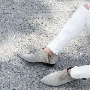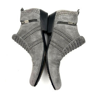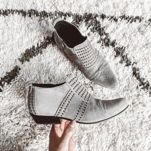 Anine Bing Low Charlie Bootie Grey Gray with silver gunmetal studs ft. Side zip closure with brand logo, Raised stud accents, western, Stitched detail, ankle fit. (note that the suede appears diff. when touched and in light, there is no damage/defect/discoloration to the suede)